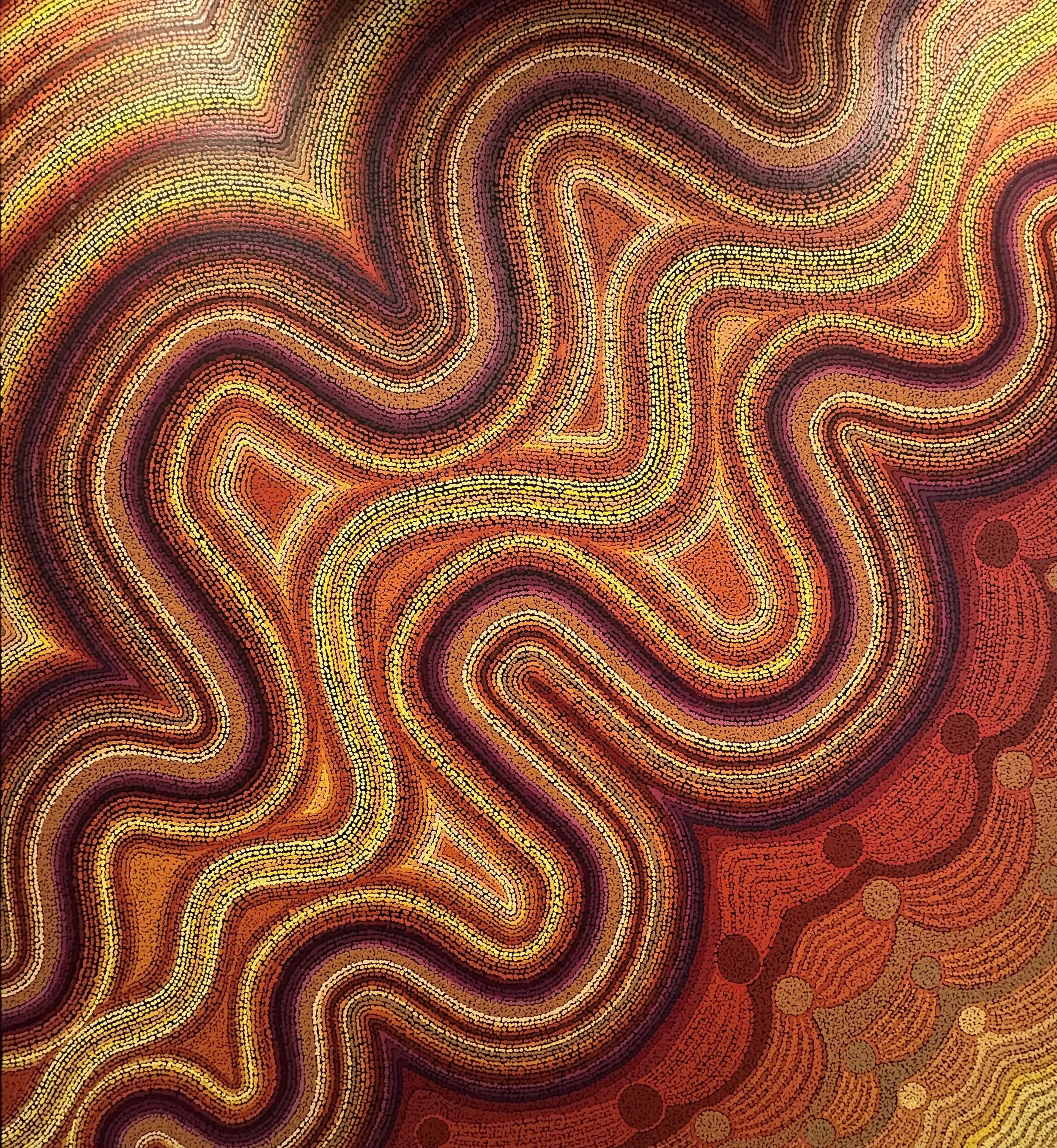 Artwork ► Ngayuku Tjamuku Tjukurpa (My Grandfather’s Story) By Megan Lyons, Pitjantjatjara. Represented by APY Arts Collective. Hanging in the Social Impact Hub Sydney office, on Gadigal lands of the Eora Nation.